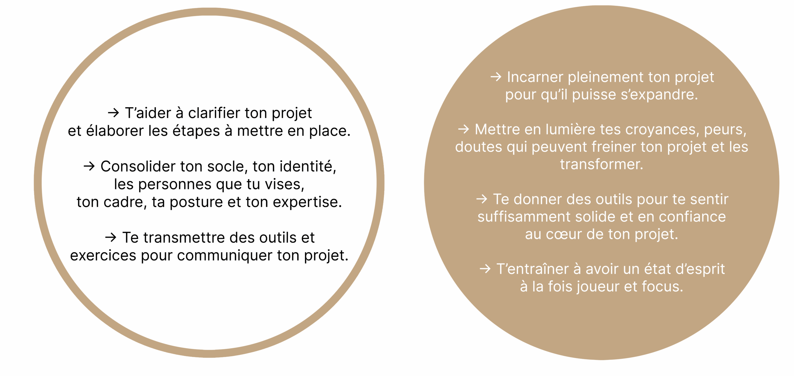 Déroulement : Un coaching de 1h30 chaque semaine par zoom ou en vrai + réponses Whatsapp sur toutes tes questions.